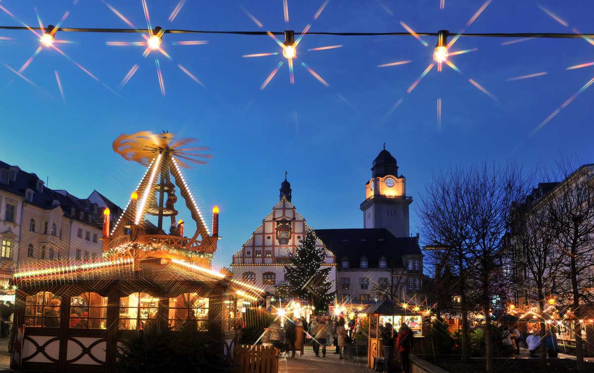 Schon seit 300 Jahren öffnet während der Adventszeit in Plauen ein Markt, heute ist er der größte Weihnachtsmarkt im Sächsischen Vogtland. Die traditionelle Weihnachtspyramide, ein Christkindl-Postamt, eine weihnachtliche Rathausturmführung, eine Eisbahn und viele weitere Highlights laden zu dem gemütlichen Weihnachtsmarkt ein. Für kleine Besuchende kommt außerdem jeden Nachmittag der Weihnachtsmann vorbei und bei der Wichtelwerkstatt wird täglich gefilzt, gebastelt und gebacken.