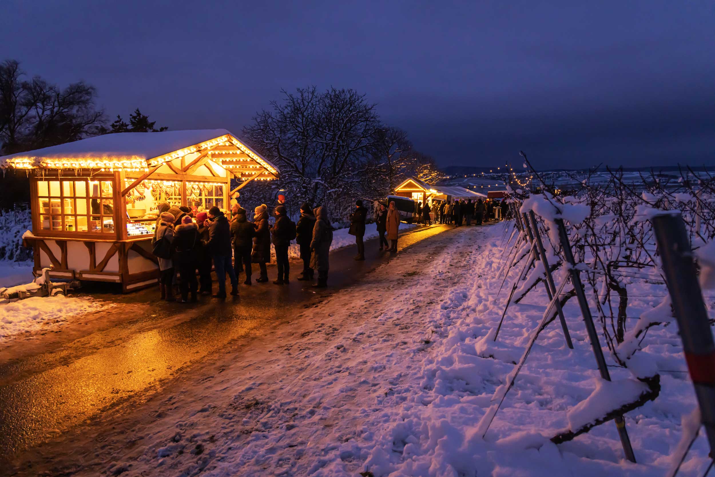 Auf der rund acht Kilometer langen Wanderroute genießen Besucherinnen und Besucher nicht nur edle Tropfen, sondern auch herrliche Ausblicke über die winterlichen Rebhänge und das historische Städtchen mit seiner mittelalterlichen Stadtmauer. Die Rotweinwanderung ist längst ein Publikumsmagnet – ein Fest der Lebensfreude, das Wein, Kultur und Geselligkeit auf einzigartige Weise verbindet.